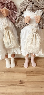 現在販売している巾着セットをご購入くださったお客様からリクエストをいただき、小さな巾着の2枚セットをおつくりさせていただきました。