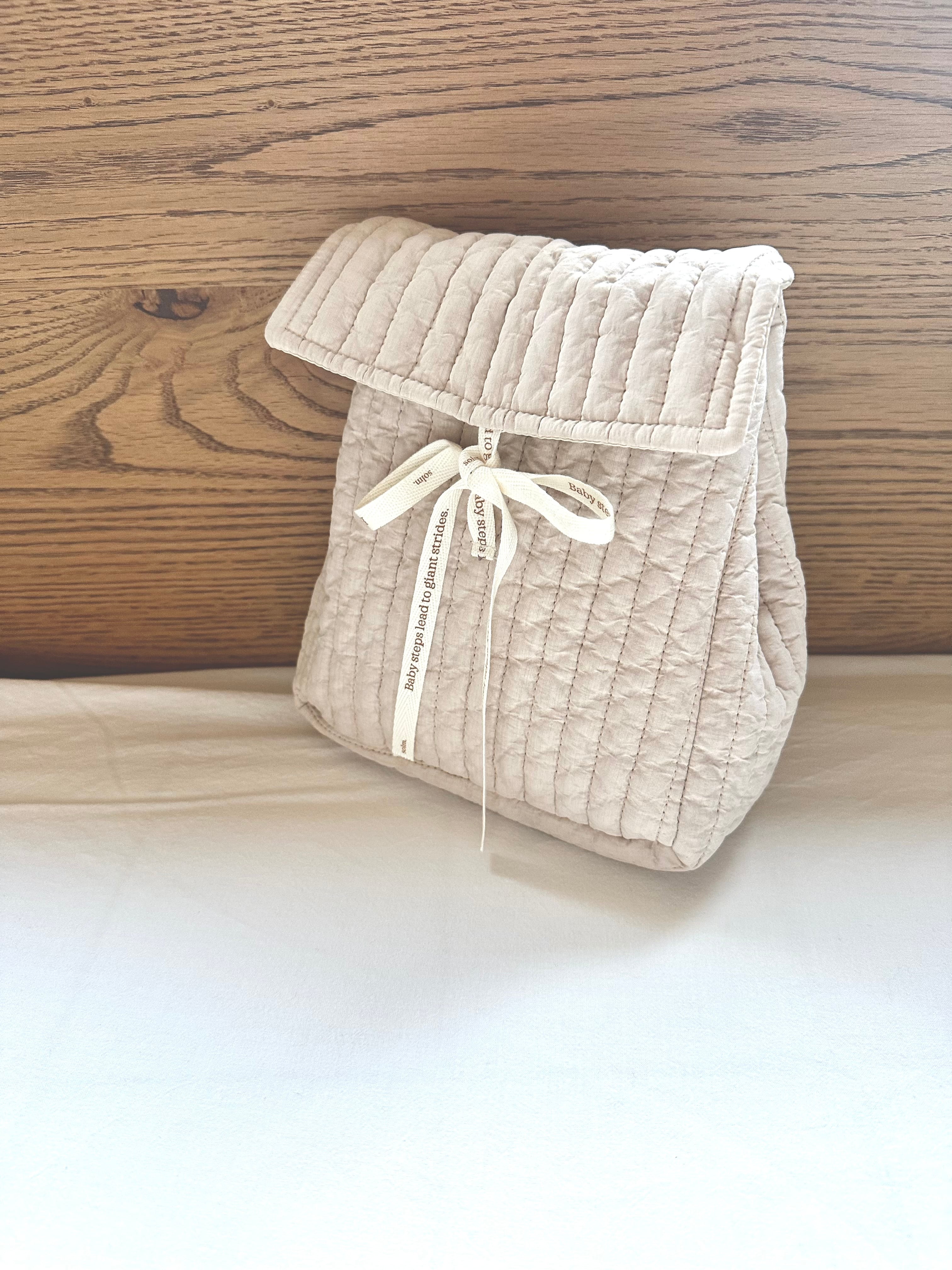 子どもの成長に合わせて使い方を変えられる、特別なデザインのsolm. のオリジナルポーチ