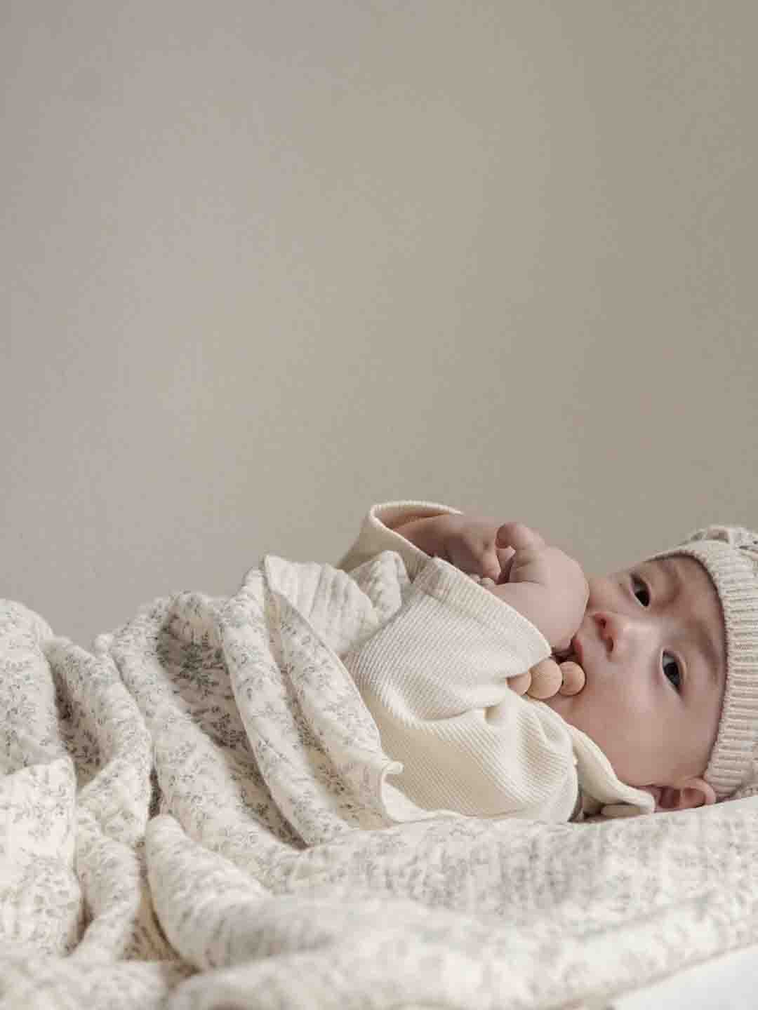 ベビーが触れても安心感のあるふわふわな綿100%の生地に、ナチュラルな単色プリントがかわいいとプレママの出産準備や、ギフトなどにも特別感があるとお選びいただいております。