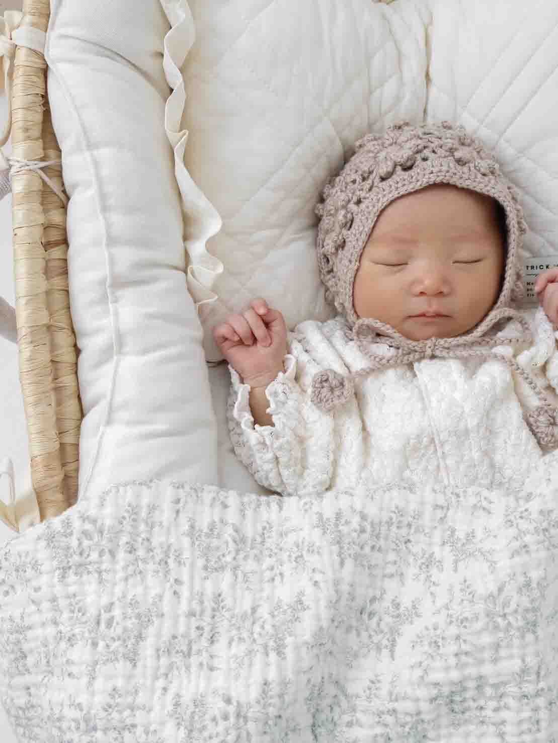 繊細な小花柄のガーゼケットは、綿100%のダブルガーゼブランケットです。